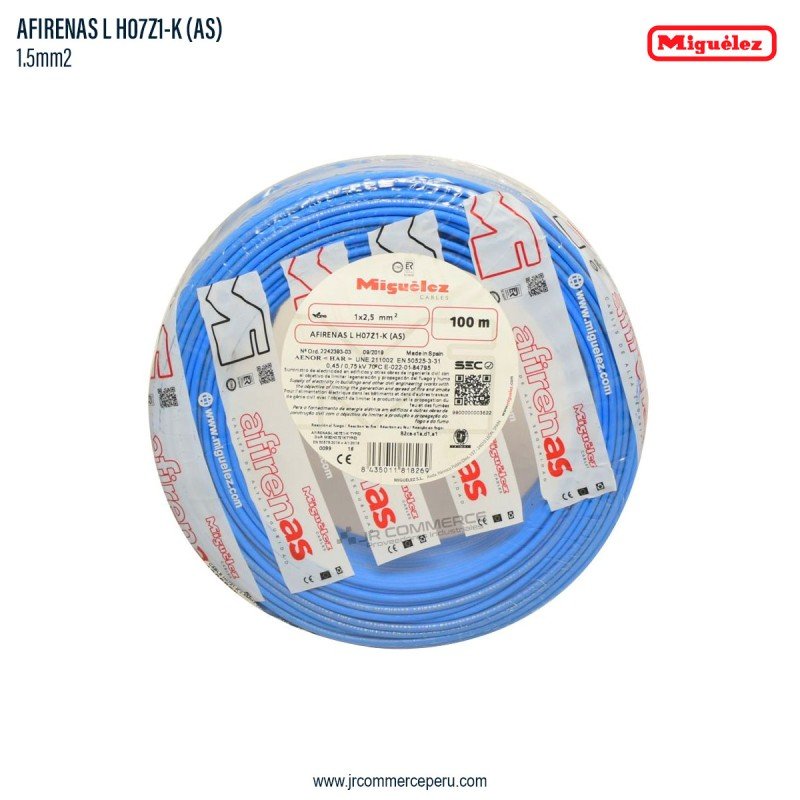 AENOR <HAR> MIGUELEZ AFIRENAS-L H07Z1-K (AS) TYPE2 1xS mm2 0.45/0.75kV 70ºC clase B2ca-s1a,d1,a1 EN 50575 MADE IN SPAIN MM/YY