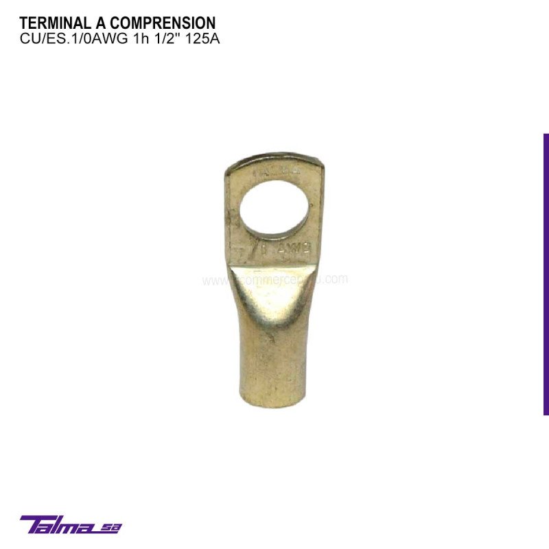 El terminal a compresión CU/ES 1/0 AWG 1h 1/2" 125A con barril estándar de TALMA garantiza una conexión eléctrica confiable y de alta eficiencia. Fabricado en cobre electrolítico estañado, ofrece excelente conductividad y resistencia a la corrosión. Su diseño con barril estándar facilita una compresión firme y segura. Ideal para aplicaciones industriales, tableros eléctricos y transformadores. Asegura durabilidad, estabilidad térmica y desempeño óptimo en instalaciones exigentes.