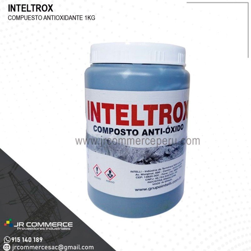 Pasta antioxidante INTELTROX, consiste de un compuesto anti-oxido viscoso que contiene partículas de zinc suspendidas, para garantizar uniones de baja resistencia. Uso en aplicaciones de aluminio a aluminio/cobre. Presentación en envase de 1kg.